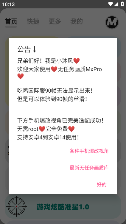 画质MxPro无任务新版本是最新的版本,这款软件可以帮助我们更好的解锁高画质的游戏内容。而且画质MXpro无任务新版本没有任何的限制,只要我们有足够的时间就可以开启,让你享受到流畅的游戏体验。