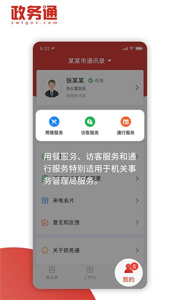政务通是国家***打造的政务服务移动端应用,由国家政务服务厅主办,该APP以“一次注册,全网通办”为目标,集约30多项功能于一体,全面覆盖政务服务的“最后一米”,为市民提供“一次注册、全网通办”的服务,让市民足不出户即可享受政务服务。