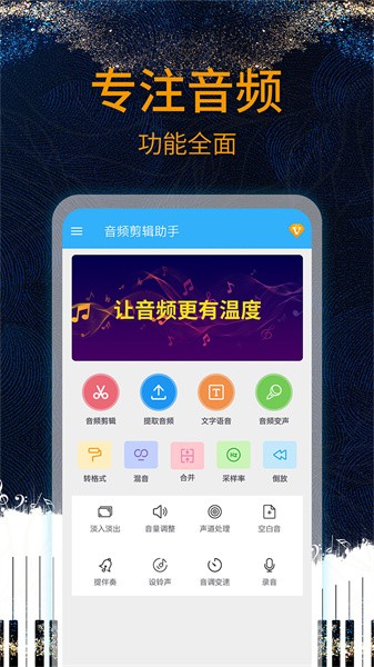 1、音乐剪辑助手app是一个非常好用的音频编辑器,你可以用它去除音频中不需要的任何部分;