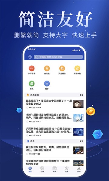 为用户带来最新的股票资讯内容,海量的财经新闻信息以及各种各样的理财服务等你体验,实时更新市场行情动态一键查看。对软件感兴趣的话不妨点击下载试试!