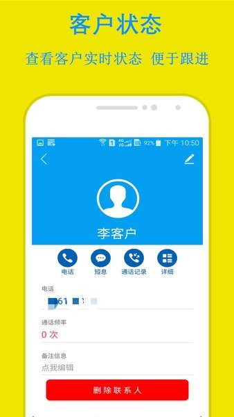 一键拨号:支持一键拨号功能,只需输入对方姓名或者电话号码即可快速获取到相应的通话记录及相关资料。