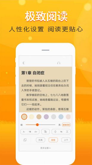 1、【每日签到】每天签到送金币,好礼送不停~2.【高清设置】护眼模式、仿真等多翻页效果、自选阅读主题,统统一键搞定。【一键换源】不怕丢失历史记录,切换字典不再困难。2、【极速更新】作者更新我更新,还有更新提醒功能哟!【离线朗读】零流量玩转小说阅读,省电省流量更省心。