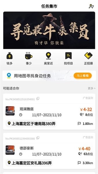 提供海量的任务供用户浏览并接取相应的任务或报名参加,满足用户的多样化生活需求。