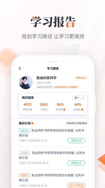 2、用户可以在平台上轻松掌握自己的学习进度情况,更好的规划自己的学习计划;