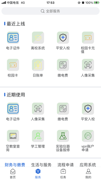 包括校园网充值、校园卡挂失、失卡解挂、一键导航等多种便捷工具!