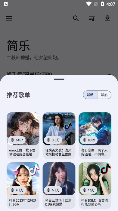 简乐免费听歌的软件是专为喜欢听歌的用户设计的一款免费的听歌软件,在这里你可以享受到超多的优质音频作品哦,海量的曲库任你选择!快来下载这款软件看看吧!