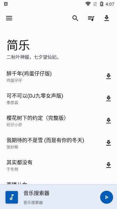 简乐免费听歌的软件是一个可以下载歌曲到手机本地的应用程序,它支持在任何平台上使用。这个应用程序不仅提供了丰富的音乐资源和良好的用户体验,还为他们提供了一个便捷、高效的使用环境。用户可以通过简单搜索功能来找到自己喜欢的歌曲或专辑等各种类型的作品。无论是想要快速发现新歌还是寻找热门推荐都能满足你的需求。