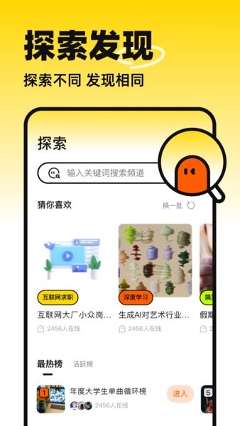 在这里,你可以邂逅到各种有趣的同学,结识更多兴趣相投的好友,扩大交际圈子;你认识更多的人,这是一个充满趣味的社交聊天社区,在这里你认识更多的人,认识更多的朋友,让大家可以轻松交到更多的人,同时还能够了解更多的信息哦,欢迎感兴趣的朋友们前来下载使用!