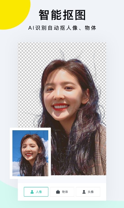 智能抠图,一键抠出图片中想要的部分或对象,自动识别;