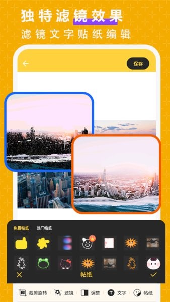 3、包含多种类型的主题效果以及滤镜能够让您的图片变得更具趣味性;