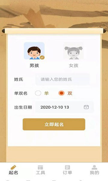 根据用户的出生时间和性别信息推荐最适合您的名字供您参考。