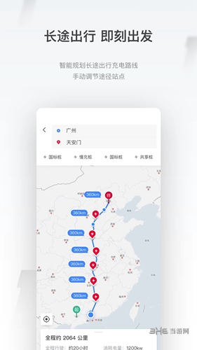 4、一键导航:集成了强大的导航系统,可自动检测周围可用充电桩的位置,并显示最近可用充电桩的信息和服务距离。