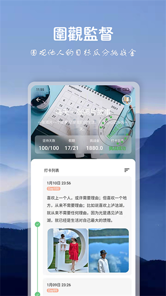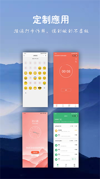 软件中有着海量的实用功能等你体验,用户可以一键定制自己的日常计划内容,随时随地进行目标记录打卡,对软件感兴趣的话不妨点击下载试试!