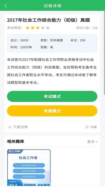 社工题库是长沙黎曼智能科技有限公司推出的一款手机社工作题库应用,用户可以直接用手机进行学习和练习。软件拥有海量的真题、模拟试卷以及各种考试资料供你使用!有需要的朋友欢迎来绿色资源网下载!
