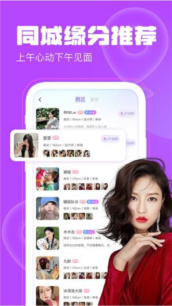 附近好友实时查看匹配指数,发现身边有缘的人。