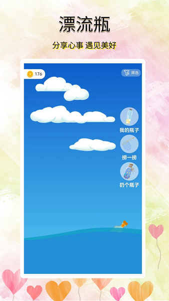 寻觅漂流瓶一款超级有趣的交友类APP,软件内置超多丰富的功能可以帮助用户进行语音交流让您认识附近的人,找到属于自己的爱情,通过匹配快速发现缘分更加便捷安全真实性,喜欢的朋友欢迎下载!