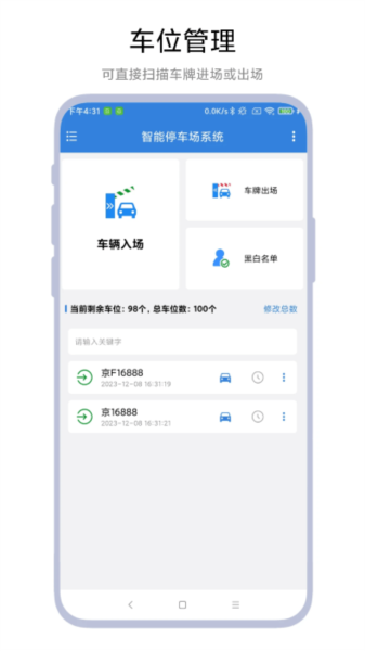 智能停车场系统最新版是基于人工智能算法开发的一款专业汽车管理系统应用程序,可以让停车场管理者随时掌握车辆位置以及费用详情及状态情况,同时还可以进行远程控制门禁开锁权限开关设置等等各项操作!