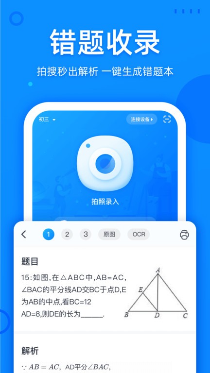 输入错题就能搜到对应的答案,再也不用手动输入;