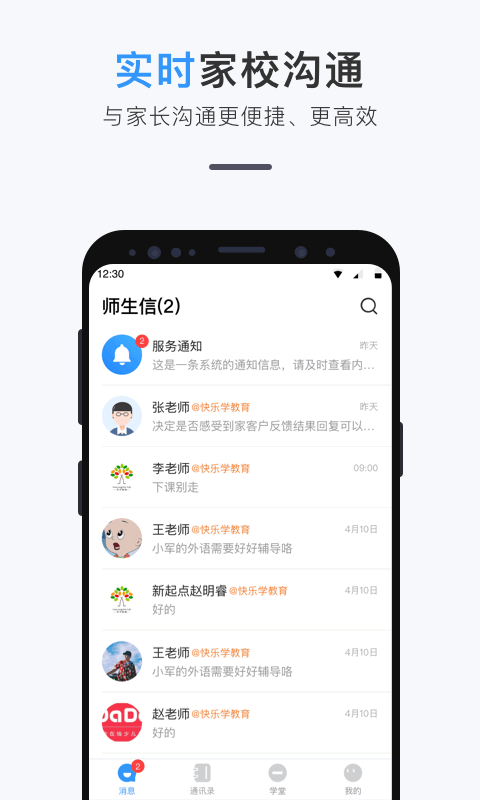 实时在线联系孩子老师或家长,快速建立自己的联系人列表;