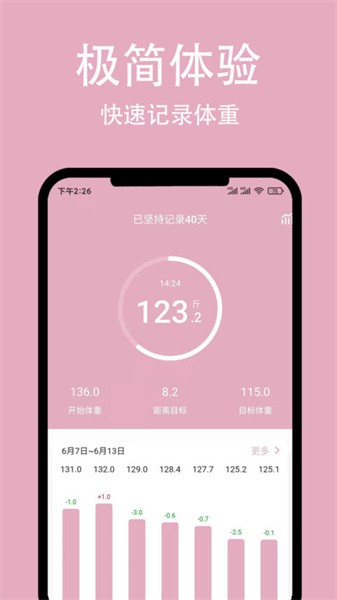 简轻体重app致力于为广大用户打造一个健康、便捷的体重管理方式,简轻体重app可快速查询自己的体重变化。