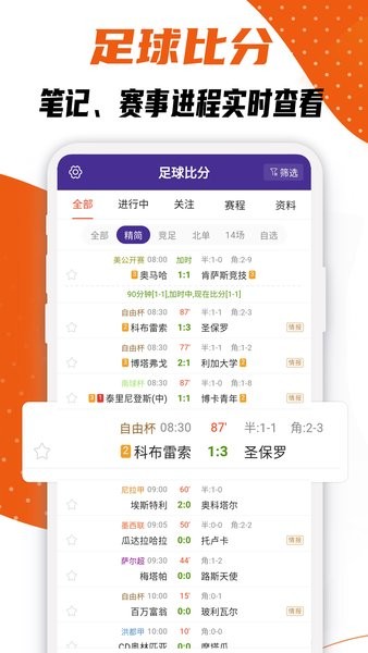 足球篮球比分直播,实时推送赛前数据分析,赛中即时比分改写。