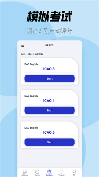 •提供多种不同类型的模拟考试场景及配套教材(如初级/中级/高级)