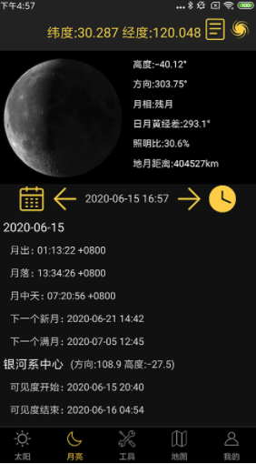 日出日落月相app是一款非常实用的日历工具,这款软件可以帮助用户轻松拍摄各种太阳系和宇宙天文等天体照片。这款日出日落月相软件还提供了丰富的天文学知识库、星座运势分析及其他功能服务。用户可以通过它获取最新的时间和地点信息并查看未来几天的重要日子,此外,该软件还提供了一些特殊日期提醒的功能,例如天气预报、生日祝福等内容。