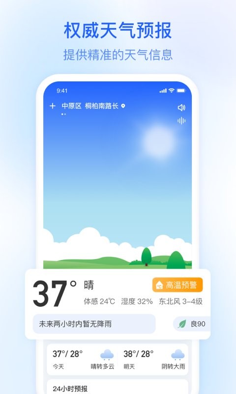 还可以进行空气质量查询以及生活指数等功能的体验。实时推送天气预警,让你在出门前做好防护准备,提前预知未来24小时是否下雨。还能对天气进行管理哦,欢迎有需要的朋友下载使用!