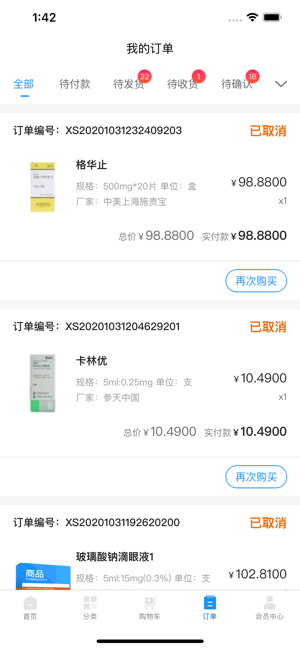 【购物车】:可对喜欢的药品以及药品进行批量付款或加入购物车完成操作;