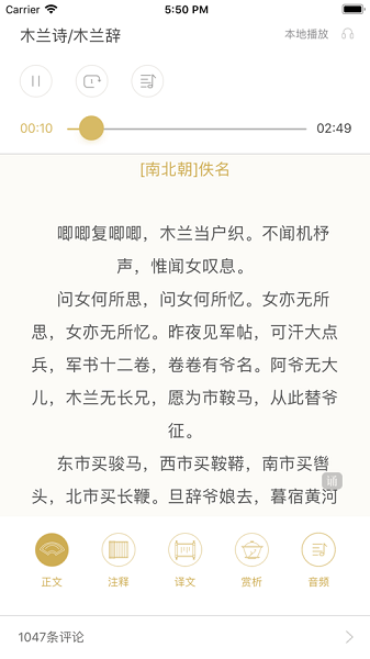 诗歌是中国传统文化的精华之一。该平台提供唐朝代诗人、唐家三少的诗词朗诵、译文和赏析,还有诗情画意的注释、译文和赏析。该应用还包含诗词鉴赏、诗句收藏、翻译和分享等功能,让学生更好地了解唐诗宋词和元曲文化的博大精深。同时,还拥有中国风主题风格,如简约现代、清爽自然,让你在欣赏诗词的同时还能品味中华传统文学的美感,感受古典文化带来的独特魅力。