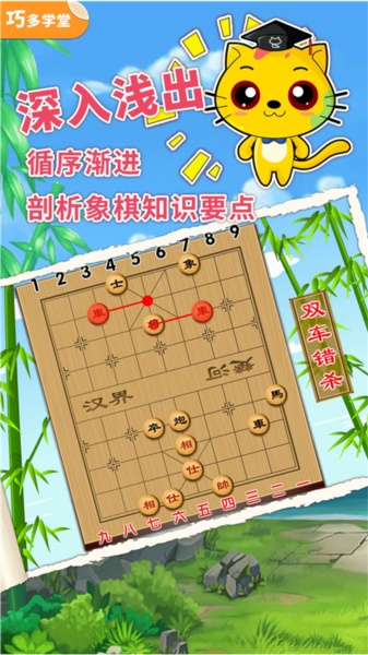 少儿象棋教学合集3-新一代儿童象棋动画教学APP是一款专为4岁以下的孩子打造的象棋教学软件,这款软件以趣味的学习方式来引导小朋友进行学习,在少儿象围养成良好的学习习惯的同时还能提升孩子对事物和知识的认知程度。