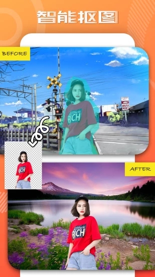 智能抠图,识别并抠取人像边缘部分,实现完美扣除背景,去背黑与抠图效果。