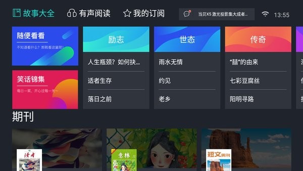 拥有海量的免费图书资源、原创文学、出版图书等优质内容及精品出版物。熊猫阅读TV版采用了全新的UI设计,整体界面简洁美观,操作使用便捷,不仅支持自定义字体、排版大小等多种设置选项,还有超多精彩书籍每日更新不断,让你随时随地想看就看。除此之外,软件中的小说种类繁多的,如玄幻奇幻、武侠仙侠、都市言情、青春校园、穿越架空等,各类小说应有尽有,并且全都可以免费在线浏览观看!