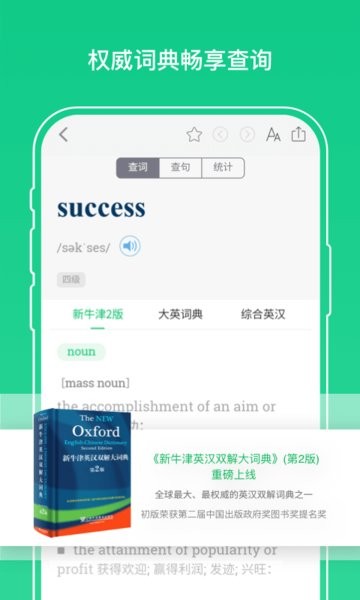 -收录最新考试和专业术语,确保用户获得最新鲜、准确的词汇解释和短语体验。