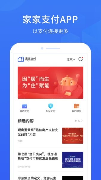 家家支付,一个致力于为广大居民提供全面且专业的房屋租赁解决方案的平台,旨在让大家足不出户即可轻松实现房屋租赁全流程数字化管理。家家支付app是一款非常不错的手机租房应用工具。它不仅具有丰富的功能特点,并且能够帮助用户更好的解决房屋租赁问题。