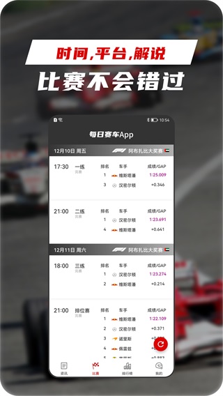 《每天竞标》是一款专门针对全国赛车比赛而设计的赛道模拟软件。它不仅提供赛车比赛数据查询功能,还提供了赛场的比赛直播、赛况分析以及赛区赛果计算服务等等!