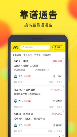 1、让广大模特都可以找到自己想要的工作或者是求职的信息都能满足到位,