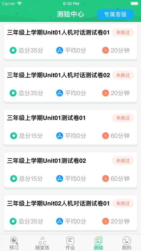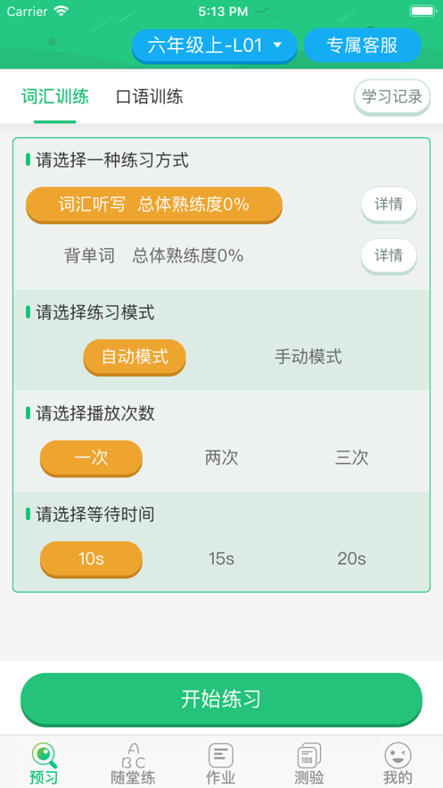 可针对单元单词句子逐字打分,并可重复练习;