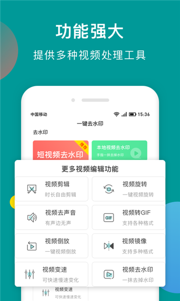 8、强大的视频编辑器:包括视频分割、视频合并分割、视频压缩、视频变速、视频同框、视频剪辑制作、视频配音、视频倒放等功能。
