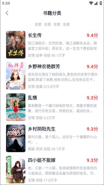内设有小说社区模块,用户可以与其他读者交流心得、分享读书体验,增加阅读的乐趣。《武侠修仙小说离你更套路:都市言情故事》《盗墓笔记》等小说资源,更新速度快,让你看书不用等待,阅读体验非常的优质。小说内容涵盖多种题材,如科幻、历史、玄幻等等,可以满足用户的不同喜好和需求。