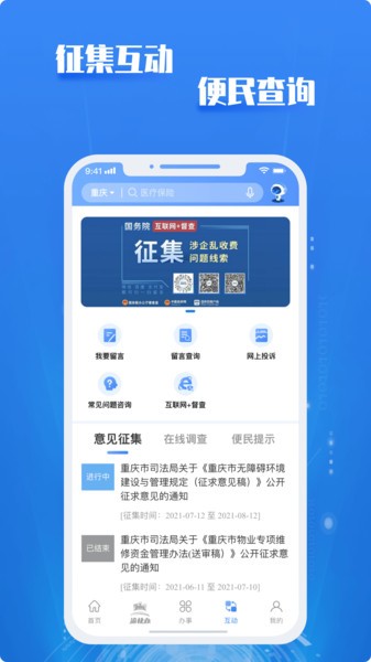 重庆政务服务网app官方打造的便捷式的服务平台,在这款软件上用户可以进行各种社保查询、公积金信息以及违章查询等操作;同时软件上还提供多种实用功能和内容。