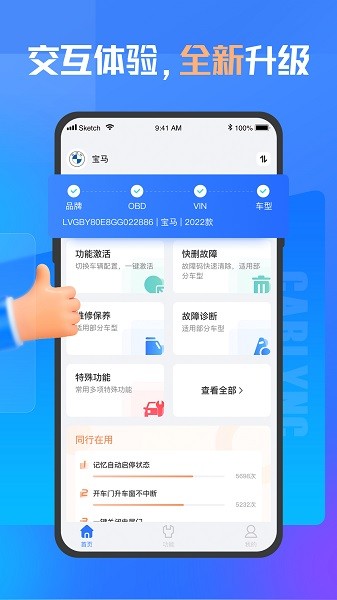 通过软件车主可以在线进行车辆维修保养,一键呼叫救援,快速完成维修工作,还可以预约保养服务等等!