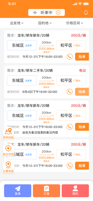 2、有着丰富的货车资源任你抢单,并且都是根据距离远近自动计算的,降低空返率。