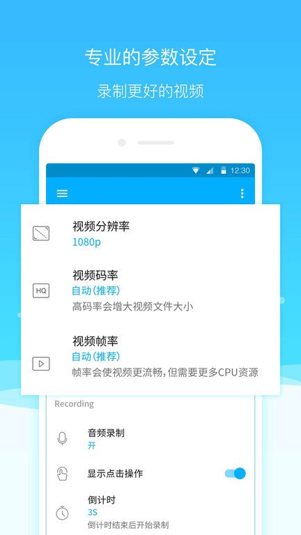 【一键录屏】一键启动、暂停录屏、开始录制,悬浮窗可隐藏。