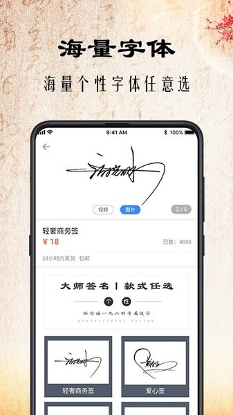 签名书法简单方便的手机字体设计app,专为书法爱好者打造的一个艺术作品创作和临摹学习软件。用户可以在线选择各种类型的签名素材进行练习写字操作,还可以在上面制作个性化的签名哦,感兴趣的朋友快来下载吧!