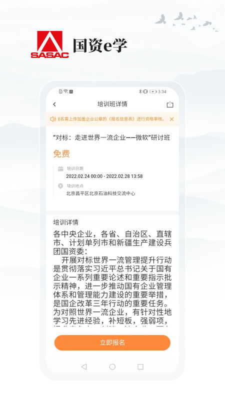 国资e学是国务院国有资产监督管理委员会干部教育网络课程学习平台app,这是一款专门针对中国国家发改委、国家知识产权局、国家知识产权局等相关部门推出的网上培训在线考试系统软件。用户可以利用这款软件随时随地进行在线学习和参加线上培训班报名以及查看最新的党政新闻信息等等内容;而对于一些需要通过网络来获取知识的用户也可以使用这款软件去帮助自己快速掌握相关知识点并且能够让自己的成绩得到提高;另外,国资E学是中国***国务院组织部工作人员网院在网络课程学习中心手机APP上也非常具有专业性,里面还有各种各样的专题视频供你观看了解!