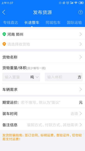 物通网货主版是针对货家打造的一个手机端发车应用APP,主要分为“发货、找货车”两个板块,让货主足不出户就能轻松解决发货难题。除此之外,用户还能随时随地查询车辆位置与轨迹情况;并能实时查看最新发布的运单状态及交易进度详情,
