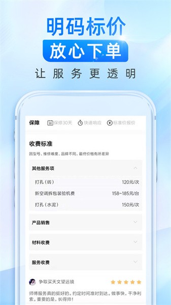 标准报价,杜绝乱收费,师傅价格公开透明,无隐形消费,师傅放心购买。