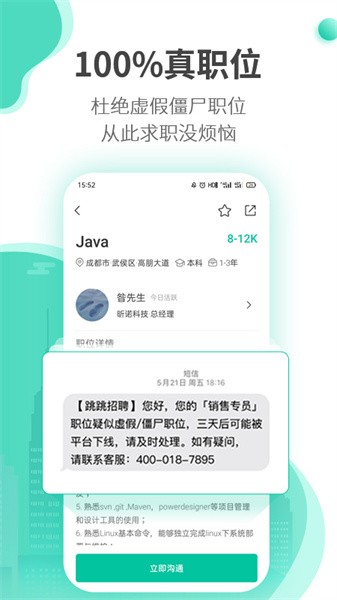 跳跳招聘严格审核职位信息,杜绝黑中介,保证职位真实性。