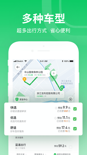 4、预约用车:提前设置好目的地,系统会根据您的行程自动分配最优乘车地点。